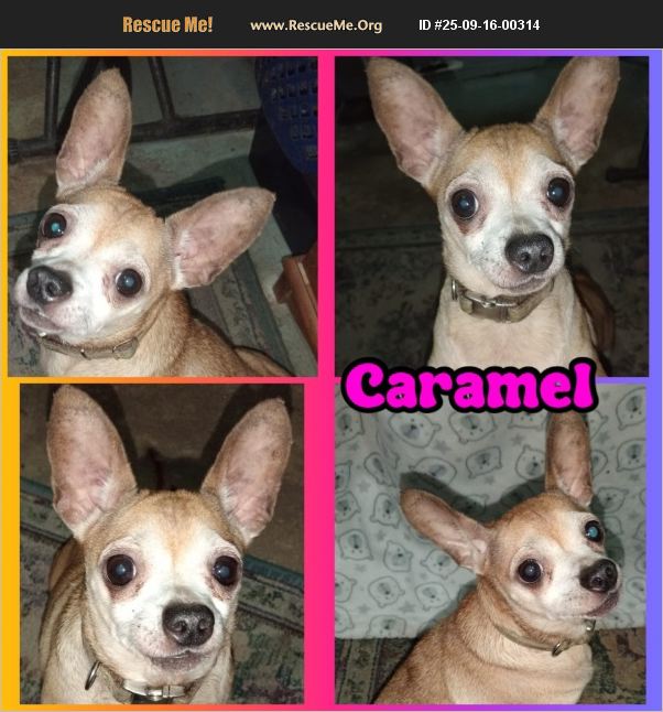 Hi everyone, I'm Caramel! I am the cutest, happiest 8-year-old chihuahua. I'm a street survivor from Tijuana Mexico. Don't be fooled by my age, I am still very active and so happy and blessed to have been rescued! I recently arrived in L.A. and anxiously waiting to find my forever home. I'm dog, kid and people friendly. I also don't mind kitty cats. I enjoy walks, belly rubs, and hanging with my humans. Potty trained? Yes Spayed? Yes Vaccines? Yes I am ready for you! HOPE TO MEET YOU SOON! CARAMEL(3