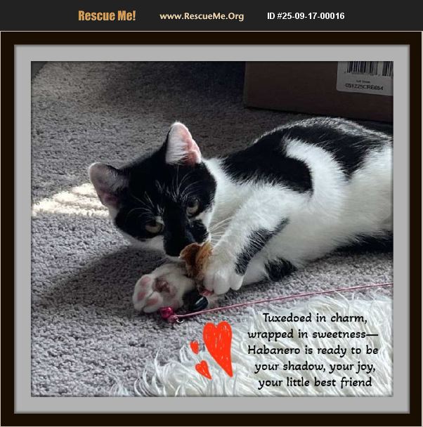 Meet Habanero, bonded with Chipotle, his sister, her link - https://post.rescueme.org/25-09-17-00017. Bonded Siblings | 4 to 5 Months Old Kittens | Tuxedo Kittens | All Love Adopting Habanero and Chipotle means welcoming a duo that brings warmth, laughter, and lifelong companionship. They're not just kittens-they're a love story waiting to unfold in your home. Habanero is the cuddle bug with a playful spark and unforgettable facial markings. He's engaging, curious, and always ready to charm with his gentle purrs and goofy antics. Whether he's chasing a feather toy or curling up beside you, Habanero is all heart. Chipotle is the lovey-dovey social butterfly of the pair. She's sweet, affectionate, and delightfully playful-always the first to greet you and the last to leave your lap. Her soft gaze and gentle nature make her the kind of kitten who nestles into your soul. Together, they're a symphony of snuggles, silliness, and sibling love. They groom each other, nap in a tangled heap, and play like it's their full-time job. Their bond is deep and beautiful-these two are truly meant to stay together. What They're Looking For: A forever home where they can continue their journey side by side. They thrive on companionship, cozy spaces, and snuggles when taking a break from playtime. They are currently with kids aging in 9 to 18 years of age, adult kitties and have been exposed to a doggie. Included in Adoption: - 2-week trial adoption to ensure a perfect fit - Ongoing support from our rescue team - A lifetime of love, laughter, and whiskered joy - Spayed and neutered - Vaccines are current - Micro-chipped with free lifetime subscription, an added benefit of adoption through our rescue. (Normally, $199 registration fee) - 15% off everything at the Pets Supplies Plus store, Hanes Mall in Winston Salem adoption bonus to help get set up for these kittens. Toys Adored: - Cat springs - Cat tower to zoom and play on - Little balls, or anything that rolls - brown paper or boxes to jump in These two are available through a new rescue, Rusty's Tales Rescue, part of our recent split from Snow Camp Sanctuary to focus on adoptable local kitties. Back to School Adoption Special: Adoption fee is $300. Apply before 9/31/25 and take $25 off their each adoption fee. A $50 saving. What a deal! Ready to welcome this tuxedo twosome into your heart and home? Apply today and let the love begin. Apply here: https://rustystalesrescue.com/adoption-application