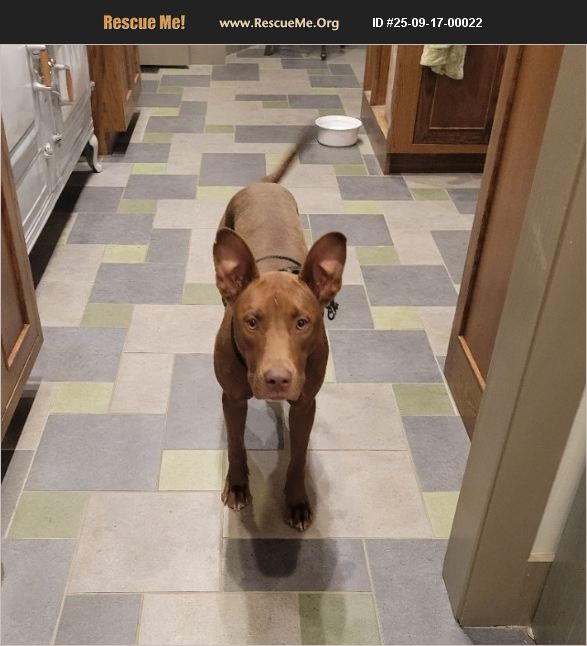 Very sweet, waggy and snuggly female brown Great Dane/Pit bull mix, 9mo. Dumped locally but had lived indoors - housebroken, crate-trained and knows 'sit'. Has had rabies vaccine. Has not been around kids with us but likely ok. Socialized to other dogs and getting used to cats.