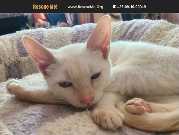 This flame point siamese baby was born April 19,2025. Sadly he has some damage to his left eye due to an eye infection that wasn't treated timely. The damaged eye has partial vision. Please text 856-526-4151