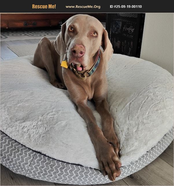 It makes things much simpler if you submit our adoption questionnaire at www.socalweimrescue.org/pages/adopt This helps us match you with the dog that fits your family best. We have more photos...contact us if you are interested. You won't be sorry. On a spring or summer day what is better than the scent of Jazmine! This girl was aptly named and is indeed a beautiful flower of the senior age of 9. She comes to us with yet another sad story. Her same photo popped up on an adoption site FREE and we got a call from her owner asking if we could help her. The person calling was the sister of the original owner, her brother, who was going to turn her in to the shelter stating he had no more time for her. SHE IS NINE! The sister went and got her to try to find her a home. Unfortunately, not only was she tossed away like she meant nothing but she also has not spent one day inside a home.THAT IS ABOUT TO CHANGE! She will be pampered and loved! She is fostered in the Mission Viejo area. She will just need to learn a new routine and we've been told she is eager to please. She has been raised with a small dog and kids. She still loves to run and play with a ball. She is healthy does not have any fatty lumps. She shows deep affection putting her head in anyone's lap who will allow her. Jazmine has a sweet, sweet temperament and deserves to live out the rest of her life INDOORS! Can you imagine?? It's been so HOT outside! For NINE years she has endured weather changes with none of the comforts or love she yearns for. UPDATE: Jazmine spent a couple nights INSIDE a foster home on a soft bed and did very well. She found the softest bed and literally crashed. She stood absolutely still for her bath and to have her HORRIBLY caked ears cleaned. She smothered her foster with gratitude by means of wet face kisses. She learned the doggy door without anyone telling her. She followed her foster sisters in and out and never had an indoor accident. She was a little protective of her food which means she probably had little access to her own food and may have even had to compete to eat. She is learning the food is now unlimited and available. Not once did anyone hear her bark. If left outside she softly whimpered. Her night was spent in the arms of her foster on the couch enjoying snuggling beneath a warm blanket as the night turned cold. She had a vet visit where the veterinary staff fell in love with her. She allowed them to handle her without a sound. She was given a clean bill of health except for slight dental tartar, normal for a nine year old, and ears caked with dirt. We made a point of cleaning her ears during her much needed bath. A little hesitant to get inside a car since she never experienced a car ride before was the biggest challenge, but once inside, she fell asleep to the lull of the motor and never tried to become one with the driver. Jazzy would do superior in a home with other dogs. She should be fed separately. She wants her food to be left alone (although lets humans handle it) and is a little stingy with sharing. We suspect this will go away once she learns she does not have to compete to eat. So sad in some small way. She'll make a great companion! Get out the ball and her heart is yours! FOSTERED IN MISSION VIEJO! THIS JUST IN!!!! From Jazmine's Foster who has said that whoever adopts her will be very lucky!: We had a great first day. She used the dog door right away and there have been no accidents. We took a three and a half mile walk this morning and she is very easy to handle. She wanted to sniff and explore most of the time but we jogged a little on the return home. She wanted to say hello to all the passers by and got a few pets from new friends. There were a few other dogs that were friendly and she said 'hello' without any issues. Some dog walkers didn't want to have interaction with other dogs which we all understand. I held her next to me and all other dogs walked by without incident. She's eating normally and takes treats gently from my hand. She is very affectionate and will give me kisses any time I'm on the floor putting on shoes. She seems to be fine when I've left the house. Nothing is disturbed when I get home from running errands or a few hours at work teaching. She is loving the cuddle beds and sat quietly during an hour long work call. She spent last night in her cuddle bed next to my bed and I don't think she got up at all during the night. If she did, I didn't hear it. She's a sweetheart that is ready to give love. Here's a cute but cheesy line I use as a play on the name Jasmine: This princess is ready for a ��Z 'Whole New World With You'��Z The Disney fans will love it!!!!