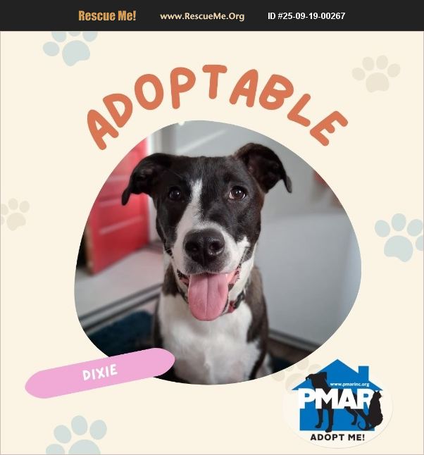 '�Ϭ Say Hello to Dixie! �Ϭ At just 1 year old, sweet Dixie is still waiting for her forever family-and we can't believe she's growing up in rescue. This happy, wiggly girl doesn't just wag her tail�'�| she wags her whole body with joy! ��%90%BE���� She's been fostered with both dogs and cats and does great with them-but she's equally content as the only pet soaking up all the love. Dixie is crate trained and settles nicely in her crate when needed as well. Because she's still working on her manners and can be a little bouncy, Dixie would thrive with older kids (8+). She adores her walks and, when it's time to relax, will happily chew on a Benebone or Kong for hours. Most of all, Dixie loves snuggling up on the couch or in bed with her humans. Playful, loving, and eager to learn, Dixie is fully vetted and ready to bring endless joy to a forever home. Could she be your new best friend? ��%90 ��ե All of our animals are examined by a veterinarian, given age-appropriate vaccinations, de-wormed, microchipped, spayed or neutered, heart-worm tested, and treated if necessary. Vet references and a home/family visit are required, and an adoption fee applies. Transport options are available within our area of operation, including Pennsylvania, the tri-state area, and New England. Please note we do not adopt animals into Canada. Visit www.pmarinc.org for more information, and to fill out an application.'