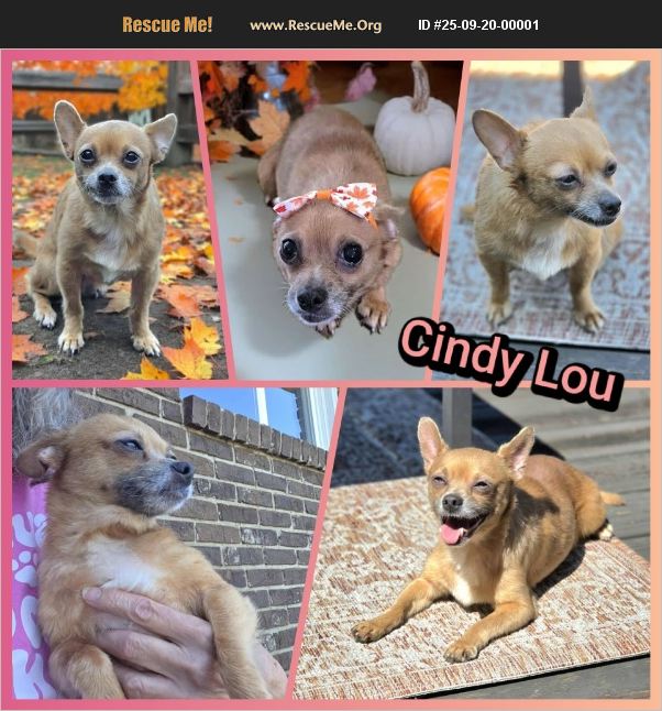 Meet Cindy Lou. Cindy Lou is a sweet 10-year-old Chihuahua with a heart full of love to give. She came into Animal Control in September 2025 as a stray alongside another senior female. Sadly, her companion was adopted without her, and Cindy Lou was left behind. We couldn't let her face loneliness, so we stepped in to bring her into rescue. Now in a foster home, Cindy Lou is doing wonderfully with the other dogs. She's up to date on vaccines and scheduled to be spayed soon. She's in good health overall, though she would benefit from a dental cleaning. Cindy Lou is a gentle soul who loves to snuggle with her foster parent and simply enjoys being by your side. Her happy nature shines through, and she's sure to bring warmth and joy to her forever family. Located in Cleveland, TN Must be adopted nearby - she will not be placed on transport Adoption fee: $50 Cindy Lou may be a senior, but she's full of love and life. Could you be the one to give this little lady the safe and happy forever home she deserves?