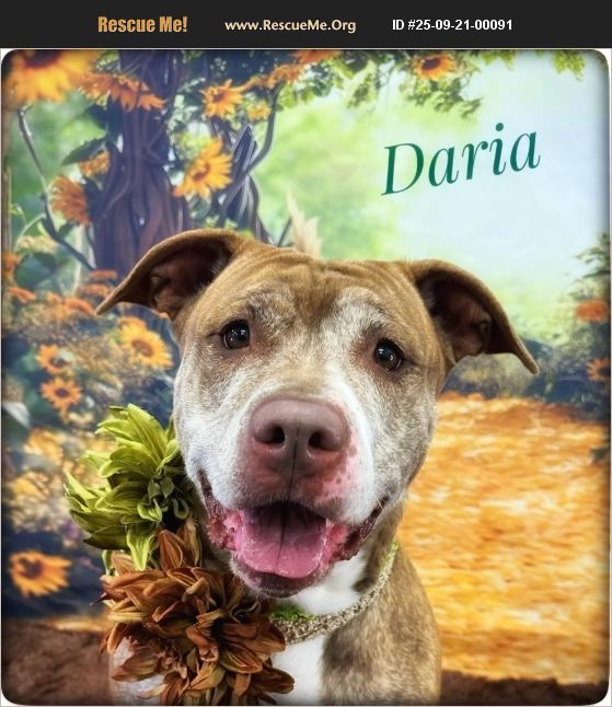Oh sweet Daria �'�| this sweet lady is about 4 yrs old , 70 lbs , kids 6+ �'�| this girl has been waiting to long at the shelter , sure she once lived in a home , she's a potty holder , she's been to a couple of adoption events and day trips and is amazing at these events , meet & greets with other dogs , she's just a gem and time for her to have her own home !!