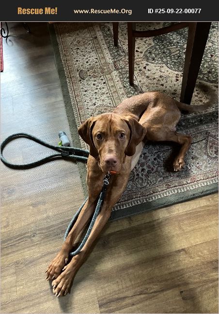 1 year old male (N) Vizsla. Microchipped. Adopter should own home, have fenced yard, highly available & active routine for him. Please call only if you are familiar with the needs of Vizsla's and their rigorous requirements and intelligence stimulation! Great with other dogs and calm cats. Prey driven, extremely playful, and well trained; responsive. He is still a pup at 1 year old. Thank you for serious calls only. Will meet at local dog park for interview. Please bring your other dog to meet him!!! Blessings��%BD'��%BD|