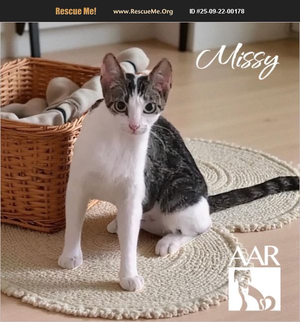 Missy was brought in from outside when she was found with her babies at a worksite. She is shy so it takes her a little time to warm up and get used to a change in surroundings. Once she is comfortable with new people, she likes being around them. Missy has not been around other cats, cat friendly dogs, or children.