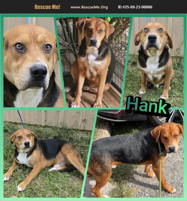 Meet Hank! ��%90%BE Hank is a 2-year-old Hound/Beagle mix who has been through a lot in his young life. He came to us after his owner passed away suddenly, leaving behind many dogs that the family was unable to keep. Thankfully, Hank found his way to Revelation Ranch, where he's now safe, loved, and looking for his forever home. This sweet boy is fully vetted and weighs 62 lbs-he has the classic look of a hound but the smaller size of a beagle, making him the perfect little companion. Hank is gentle and kind, but also shy and timid with people. He will need a patient family willing to give him the time and space to build trust. Hank is dog-friendly and enjoys the company of other pups. We aren't sure how he is with cats, but given his hound instincts and prey drive, a proper cat test would be needed before placement in a home with cats. Because Hank likely never had much experience with a leash, he freezes up when one is put on and will simply lie down instead of walking. With consistency, patience, and lots of love, his forever family can help him gain confidence and learn that walks can be fun. Hank may be timid, but he is truly a gem. In the right home, he will blossom into the loyal, loving companion he was meant to be. All he needs is a safe place, gentle guidance, and a family to show him he's finally home. �%9D%A4��%8F ���%8D Located in Cleveland, TN ��s%90 Transport available to other states ��շ Adoption Fee: $150