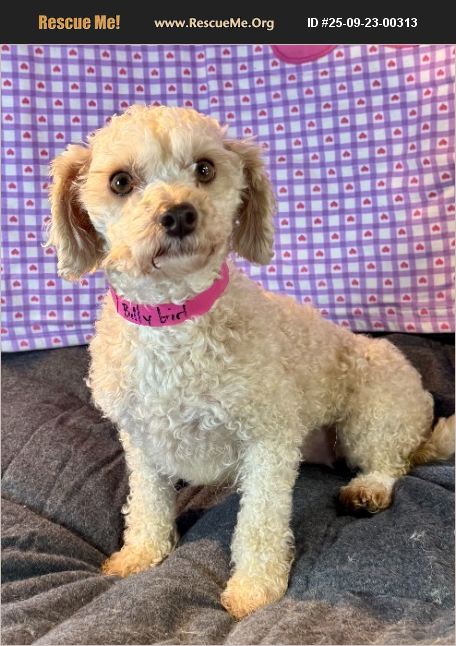 Important Information Please read! If you are interested in me after reading about me, please visit my site, http://www.breederadoptions.org and follow the instructions. The majority of the dogs we rescue, mostly breeder dogs, have lived their entire lives in less-than-ideal conditions so will need to be socialized, house and leash trained. Most have never lived in a house, walked on a leash, had a treat or sat in a lap. For many of them, their feet have never touched the ground after living for years on wire until they arrive at our main facility where they are evaluated, groomed and given vet care. Most of these dogs are not socialized and need to be cornered to be picked up, so are not suitable for people with physical disabilities or suffer from PTSD. They need folks who will make them the center of their world and help them learn to trust before even attempting to train. Please do not apply if you do not meet the requirements of the dogs we rescue. However, they will learn with time, love, patience and most of all, commitment. You must have an ample supply of all of these to reap the rewards of watching these very special dogs become your wonderful companion. We state any known health issues, all are altered unless there is a medical reason not to, which we will advise, any known medical issues addressed, are microchipped, are UTD on all vaccines and have been checked out by at least one veterinarian, usually two. We do not guarantee the health of any of our rescued dogs. The dogs we rescue have lived with other dogs all of their lives and most get along with other dogs. We state if they are dog aggressive. We require a permanent, full-time parent. That means you must be able to spend the majority of your time with your new companion to socialize and train. We do not, under any circumstances, place them in homes with young children as they have not been exposed to children, and we do not know how they will react. Please do not waste your time or ours if you are not prepared to adopt within 2 weeks and you are not willing to pick the dog up at its location. Hi! My name is Billie Girl, and I am a sweet Bichonpoo girl who was born 9/17/20, and I weigh 10 pounds. A sibling to learn from and play with would be just perfect for me! If you have been waiting for a gorgeous Bichonpoo girl, please ask for me on your application to http://www.breederadoptions.org. Love, Billie Girl 092025-07