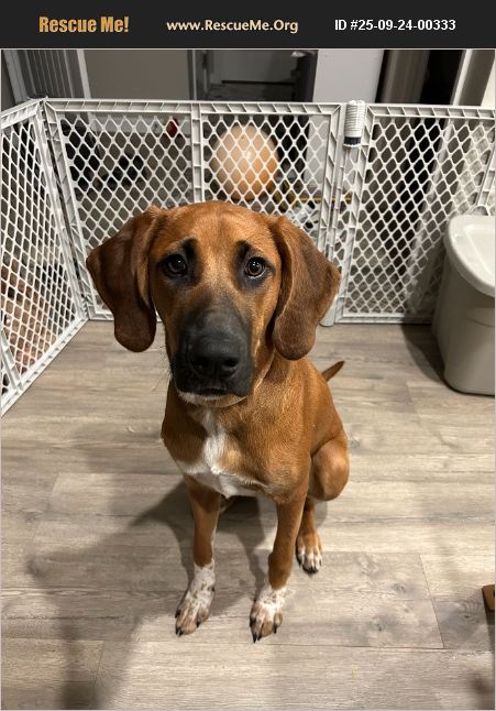 Penny is a very sweet dog. She is willing to please. She's submissive and wants your love and attention. Penny loves tug of war, sniffing anything and everything, 'find it' games, and puzzle games. Penny would thrive in an active household. The household could have kids, but they would need to be older due to her size. She is excellent with young children, but can be too rough when playing. Penny has not been cat or animal tested. Penny has been introduced to other dogs and does well with them, but has not lived with another dog in the home. She would do best in a home with a yard. Penny knows sit, down, stay, 'give me your paw', 'other paw', 'leave it', and 'off'. She is housetrained and crate trained. We use a gentle leader when walking her because she pulls. We think she would improve with consistent leash training. Penny is up to date on vaccinations. She is not yet spayed and she has not been microchipped. Penny loves attention, but also needs the freedom to sniff and explore. Penny needs regular and consistent activity.