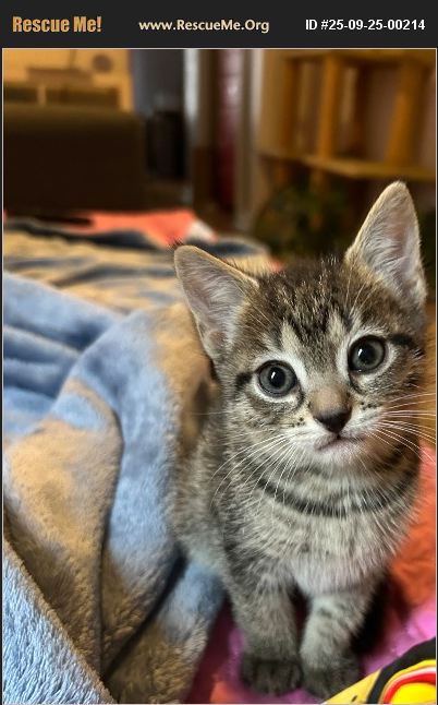 Lucille is a mixed breed, her mother is a Somali cat where she gets some of her coarser fur from that goes right alone her spine , and has tabby markings while an American wire hair mix. This kitten is hoping to be rehoused with her litter mate who is also posted on this website his name is 'Butler' a tuxedo shorthair kitten. These kittens will be 8 weeks on October 7th which is when they can be rehoused while no longer depending on mom. She is a very passive kitten but curious yet very cautious and depends on another kitten to be around and will only sleep with her sibling. She may need time getting used to if she cannot be homed with him.
