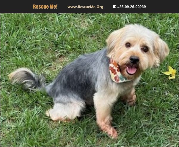 This dog is in Tennessee. Adoption Donation $250 if picked up in TN, $325 plus transport fee for out-of-state adoptions. Bryson is a 4.5-year-old, 26-pound Yorkie mix with a happy personality and a cute curly tail that wags whenever you look his way. He has a medium energy level and quickly settled into his foster home, where he happily follows his person everywhere. Bryson loves attention, spins in circles when excited, and sits patiently on a bathroom mat while you get ready for the day. He is primarily housetrained and wore a belly band briefly during his adjustment period, but that habit stopped quickly once he settled in and was neutered. He sleeps quietly in his crate at night and even goes in on his own when he wants to rest, though he probably doesn't need to be crated at all. He enjoys plush toys, car rides where he rides calmly tethered in the passenger seat, and of course, being near his people. Bryson also knows a couple of basic commands like 'sit' and comes when called by name. Bryson is a gentle, happy dog, though he can be a little jealous when another dog gets attention and may bark to make his feelings known. He currently lives with another dog, and while there's no aggression, he would do best either as an only dog or with a more submissive companion. He is not a big barker overall, which makes him a joy to have around the house. Bryson has some mild vision impairment and slight allergies to grass, but neither slows him down-he adjusted to stairs within days and gets around just fine. He was pretty good for the groomer also. Bryson would thrive in a home with someone who is around most of the day to give him the love and attention he craves. In return, he'll offer loyalty, companionship, and endless tail wags! Interested in adopting? Take the first step and complete an adoption application on our website: http://aarf-tn.com/adopt/adoption-apps/ If you have questions that are not covered in the profile, visit the Pet Inquiry Form: http://aarf-tn.com/contact/pet-inquiry-form/.