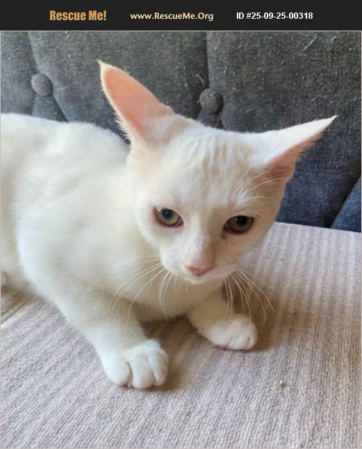 Meet Ghost of the 'Halloween Trio!' He came to us after being found as a stray along with his siblings, Boo and Spirit! These four-month-old sweethearts are now ready for the next chapter of their story-a loving furever home. Ghost is the biggest of the Halloween threesome! He may look a little mysterious with his all-white coat, but behind his shy nature is a sweet, loving boy who especially adores his brother Boo. These two are like little shadows of each other and would be happiest staying together. Ghost is a mellow player and a big fan of mealtime-he's never one to turn down a snack! He is good with other cats and is also in foster with a dog. He must be adopted to a home with one of his littermates or another kitty. With a little time and love, Ghost will surely become your loyal companion. His adoption fee is $250 and Ghost is vaccinated, FIV/FELV negative, microchipped, and will be neutered in October. If you're interested in this cutie, please fill out an application at https://form.jotform.com/201805462692153. For questions, email [email protected].