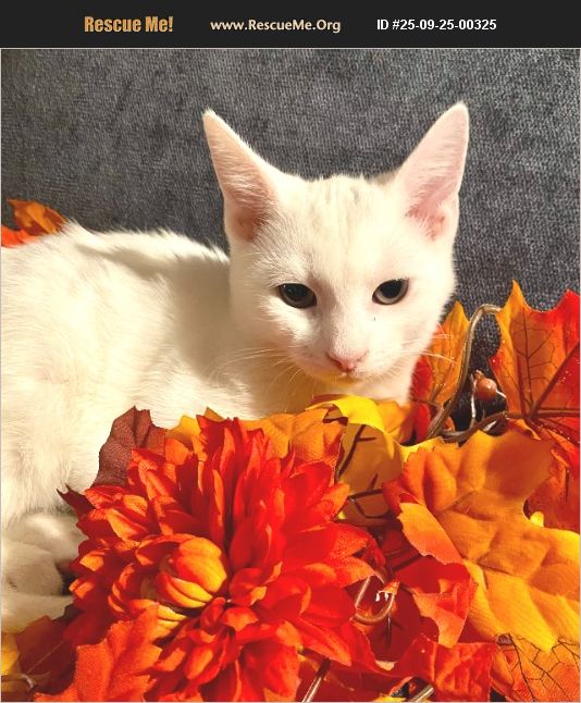 Meet Boo of the 'Halloween Trio!' He came to us after being found as a stray along with his siblings, Ghost and Spirit! These four-month-old sweethearts are now ready for the next chapter of their story-a loving furever home. Boo is a gentle, mellow soul who loves to spend time with his brother, Ghost. The two are especially close and can often be found snuggled up together or enjoying mealtime side by side (they both LOVE their food). Boo is a sweet, shy kitty who blossoms with patience and kindness. With his soft white fur and stunning eyes, he's sure to cast a spell on your heart. He is good with other cats and is also in foster with a dog. He must be adopted to a home with one of his littermates or another kitty. With a little time and love, Boo will surely become your loyal companion. His adoption fee is $250 and Boo is vaccinated, FIV/FELV negative, microchipped, and will be neutered in October. If you're interested in this cutie, please fill out an application at https://form.jotform.com/201805462692153. For questions, email [email protected].