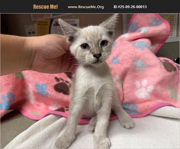 I am described as a female, lynx point Domestic Mediumhair mix. The shelter thinks I am about 9 weeks old. I weigh approximately 2.22 lbs. I have been at the shelter since Sep 25, 2025 and I may be available for adoption on Oct 02, 2025 at 9:42AM.