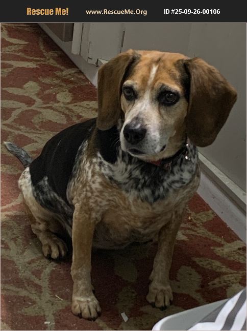 Maisey is very affectionate and loving. She needs to be walked 3 times a day to relieve herself. She must have been trained this way and she won't go when tied out. She barks at cats and delivery people but is friendly to people who walk up to the house. She weighs 39 lbs but could stand to lose some weight. She is 7 1/2 years old. Her spotted markings are a type of beagle called Blue Tick. She can sit, shake, and lie down on command. She doesn't walk well on a leash and can escape some harnesses.