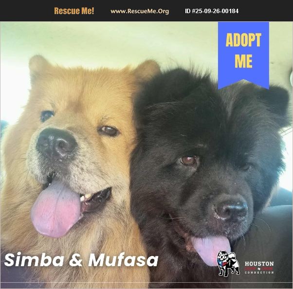 Simba (red, almost 2 years old) and Mufasa (black, almost 3 years old) were surrendered when their owner, facing serious health issues and upcoming surgery, could no longer care for them. Though heartbroken, she wanted to make sure her beloved boys had a safe and loving future - and now they're ready for new homes! Mufasa weighs 54 lbs. He charmed everyone at the vet (until they touched his feet!) and was a champ for his bath. Simba weighs 72 lbs and could use a little diet help. He was nervous at the vet and panicked when restrained, but never mean - just overwhelmed. What they're like at home: - Both are very people-friendly and unusually kissy for chows - Ride well in the car (Mufasa just prefers not to travel on a full belly) - Know how to use a dog door - Have been respectful of the fence and well-behaved overall - Simba has done well with other dogs - Mufasa prefers a calmer setting and feels overwhelmed with too many dogs at once - They're not strongly bonded and may thrive better independently Gentle, loyal, and full of personality, Simba and Mufasa are ready for their next chapter. Whether adopted together or separately, they'll make wonderful companions for families who understand and appreciate the chow spirit. **Simba and Mufasa are being fostered in O'Brien, Florida. Paid transport can be arranged. Transport costs range from $200-400.** If you are interested in adopting, please complete an application @ https://form.jotform.us/41173109602142. Once approved, home visit and reference checks are also required. If you have further questions outside of this listing, please email [email protected].
