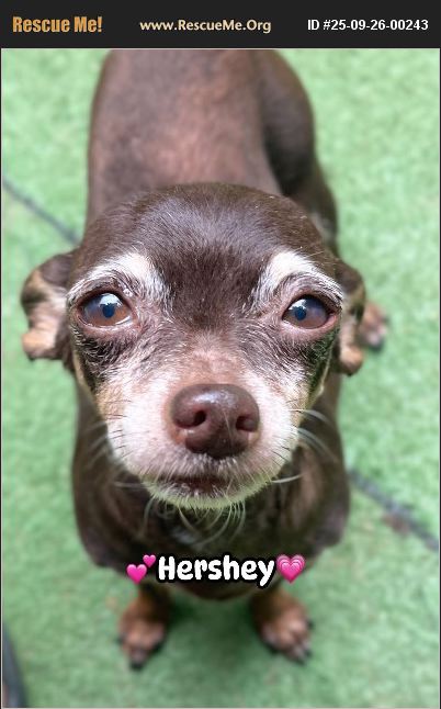 Hershey is 1/2 of a bonded pair. She will need to be adopted with Snickerdoodle. They are a perfect pair, as they are both so sweet! Hershey is happy to show off her adventurous side. She loves exploring the play yard outside. It is helpful to put a little bell on her in the house, as she snuggles up in a tiny corner and naps soundly some days. These sweet siblings are amazing little bundles of love. It was not easy for their momma to give them up, but she was at the end of her ability to care for them any longer. They have adjusted amazingly in their foster home. They go up and down stairs well, and even explore the play yard. Hershey has much more energy now that she has lost weight. Snickerdoodle is doing much better now that he had his dental procedure. We are still caring for his eye inflammation. That is clearing up, but he will need eye drops for the remainder of his years. You will never feel alone or unappreciated again with these two love bugs. Both are crate trained, walk well on a leash, seem to be potty trained once they are on a regular schedule, spayed/neutered, heartworm free, up to date on immunizations. 10 years old Chihuahua. 6 lbs. Senior Citizen discount.