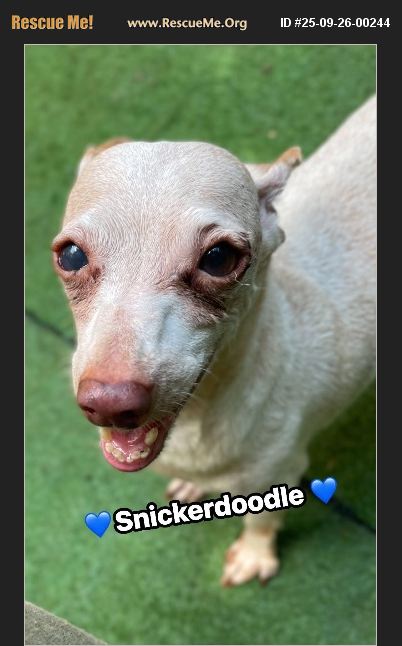 Snickerdoodle is 1/2 of a bonded pair. He will need to be adopted with Hershey. They are a perfect pair, as they are both so sweet! Snickerdoodle is happy to show off his pearly whites. The 2 pups eat separately, but explore much of the day together and sleep together too. These sweet siblings are amazing little bundles of love. It was not easy for their momma to give them up, but she was at the end of her ability to care for them any longer. They have adjusted amazingly in their foster home. They go up and down stairs well, and even explore the play yard. Hershey has much more energy now that she has lost weight. Snickerdoodle is doing much better now that he had his dental procedure. We are still caring for his eye inflammation. That is clearing up, but he will need eye drops for the remainder of his years. You will never feel alone or unappreciated again with these two love bugs. Both are crate trained, walk well on a leash, seem to be potty trained once they are on a regular schedule, spayed/neutered, heartworm free, up to date on immunizations. 10 years old Chiiweenie 12 lbs. Senior Citizen discount.