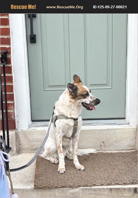 These amazing speckles belong to Benny, a Cattle Dog Border Collie mix. Benny is between 1-2 years old and weighs about 32 pounds. Benny is a fun, smart guy. In a short time, he has learned sit and is house trained. He looks to his people for direction and will learn more easily. Benny is a friendly guy with people. He starts a hint shy and quickly warms up. He is also good with large and small dogs. He loves to play, so older sedate dogs won't appreciate him. He would be fine as an only dog or with another dog at home who loves to play. He would be best in home with no small children. Benny likes to have fun. He likes to fetch and loves toys. He is also good on leash and will appreciate walks and hikes. He is a polite passenger in the car, and a bit scared as it's newer to him. He jumps right in when asked, so a bit more practice will make him a pro. Benny finds the busy city life to be a bit much. He doesn't appreciate the train going by. He is looking for a home in a suburban or rural environment where we have seen him thrive. As for his new home, they will be lucky. This guy is fun. He is sweet and smart. Plus, he likes to cuddle before bed and first thing in the morning. Benny will be a lovely adventure pal and all around buddy. Benny is neutered, microchipped, and up to date on vaccinations. He is located in Philadelphia, PA and is ready to meet adopters who can come here or meet part way to adopt.