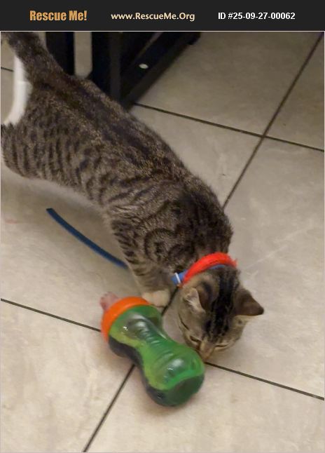 Sushi is a sweet cat. She gets along with everyone, but she has a ton of energy. I just want her to go to a home that has more time to spend with her. She needs lots of toys and room to run and play as much as she wants.
