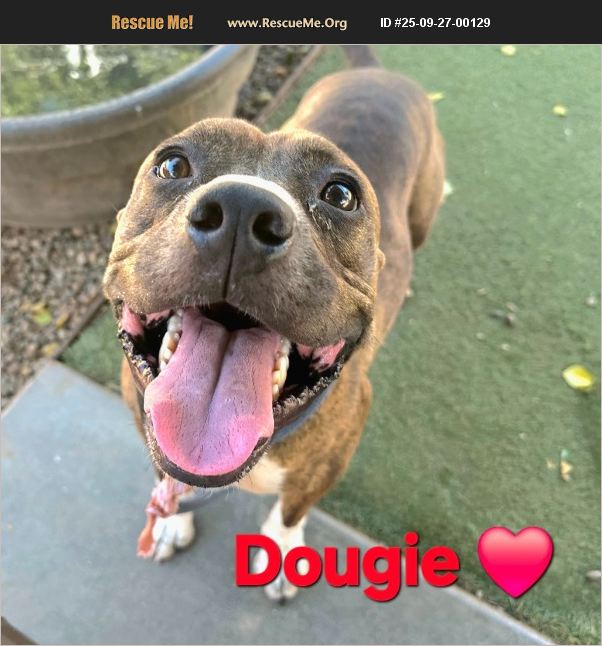 Please help me live! Mcacc Shelter has given me a deadline due to kennel stress. I have done nothing wrong so I hope you come and meet me before my deadline! LOCATED: 2500 S 27th Ave Phoenix Az Fill out: https://www.thedogsavers.org/apply-to-adopt/ Call: 480-331-4188 DOUGIE #A5150902 I'm a 2yr old 35lb Neutered-male, Brindle/White Staffordshire Terrier Mix. Owner surrender because they couldn't keep me. I am considered dog friendly! I lean in for pets and I love the attention. I know 'sit,' and I take treats politely and gently. I'm a little timid and quiet, but I love to play also! Life in the kennel is hard on me-it stresses me out being locked up and now I have only a little bit of time left to live! Please come and meet me!!
