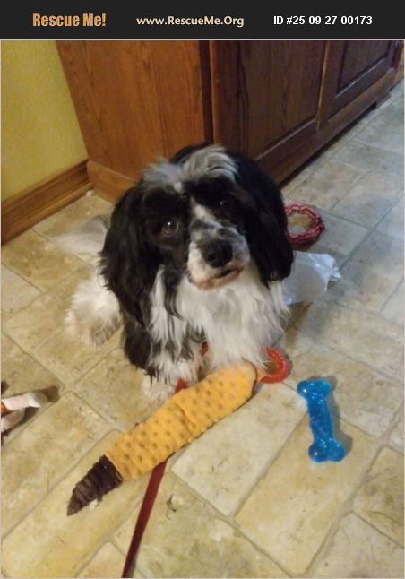 Monte is a purebred black and white Havanese. Rehoming due to owner being very ill. He is very smart and learns tricks easily. Has been housebroken if you let him outside often. He would make a good babysitter/ playmate for puppies or cats. He gets along with other dogs, and doesn't mind cats. He's an inside dog and cannot tolerate the heat well. He does not like being alone , so he needs a playmate dog to keep him company. You would need to take him to the groomer for nail trims, face trims, and coat trims. He does not like his feet or face touched. That's the only reason he may not tolerate small children. Otherwise, he's a good boy. And will let you know if someone is at your door. He would protect you from strangers. I'm looking especially for someone who knows the breed. Or may need a companion for another lonely dog. Adoption fee is $50 with Veterinarian recommendation. I want the best home for him.