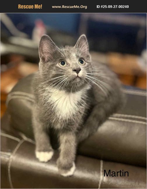 This adorable kitten is Martin. He is 9-weeks-old and has a soft shorthaired grey and white coat. Martin is at a foster home, not at our shelter. His foster says 'Martin is a smart, curious and rambunctious little boy. He is into everything and squeaks for attention. Martin enjoys toys and lots of love. He can often be found wrestling with his delicate little sister Dior. Martin has a funny personality. He likes other cats and may be ok with dogs. He is litter box trained.' Martin is vaccinated for age, microchipped and healthy. His adoption fee is $225. If you would like to meet/adopt Martin, please complete our online application at https://daws.org/daws-forms. Email [email protected] with questions. Martin can't wait to meet you!