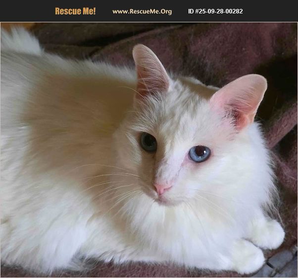 Please fill out an application to start the process to meet MELLOW! - Her foster will call you to chat and to set up a meet and greet which will be in Riverside, CA https://pawsitivetailstoremember.forms-db.com/view.php?id=25487 Meet Mellow who is 8 years old and is fully vetted; she is spayed, vaccinated, micrchipped and she is a pure white Turkish Angora with bright blue eyes! We rescued MELLOW on December 27, 2024 when she and her housemate were both owner surrenders, after living in the same home since kittens. When she arrived to us she was dazed, bewildered, confused, scared and sick. She also had a very large umbilical hernia! MELLOW was started on a round of antibiotics and her URI did subside, but not completely. She was then started on stronger antibiotic, but her appetite was slowly diminishing and she was losing weight; her coat was greasy looking and dull. It was discovered that she now had FELINE INFECTIOUS PERITINITIS (FIP). This is a FATAL DISEASE if not treated quickly and diligently. MELLOW was started on the medication known as GS and she received the full protocol for treatment and stayed in treatment for 94 days. There is also a 94-day observation period after the treatment. MELLOW survived and she is doing amazingly well! Her Umbilical hernia was repaired a few weeks ago and she is now ready for the next phase of her life. Her Forever Home. What MELLOW needs is a quiet home with one other quiet very friendly cat. MELLOW has had a rough 10 months and she needs someone who will respect all she has gone through. We want someone who is knowledgeable with cats. She is sweet, loving and has a quiet nature. She loves light brushing and will require that to keep her longer coat looking pretty. It will take her a while to decompress going into a new home and she will need your help through this transition. There is ABSOLUTELY No name change�'�|.MELLOW has had the same name all her life. Will you be the special person she needs?