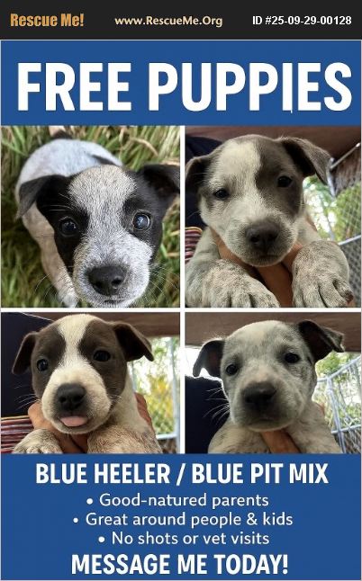We have 11 puppies. They are about 8 weeks old and are Blue Heeler and Blue Pit mix. Adorable and very energetic. I can be reached via email at [email protected] or via text message at 601-788-4256. I can provide more pictures and videos if necessary.