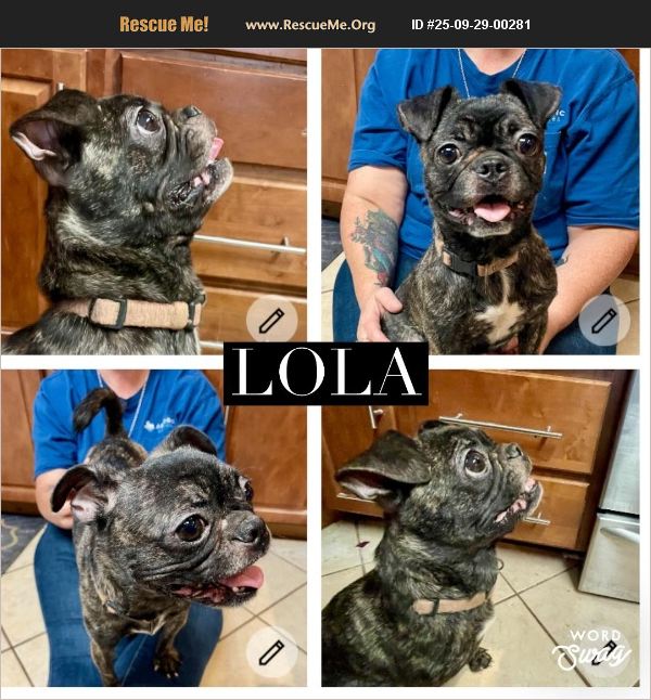 Lola, was abandoned I rescued her and have learned she's probably about 2-4 years ild and she gets along well with children, dogs, large and small cats even chickens, and she has the energy of a young pop. She is very well behaved house trained, and absolutely adorable. She knows commands like sit and stay, and gives hugs, she is brindle in color