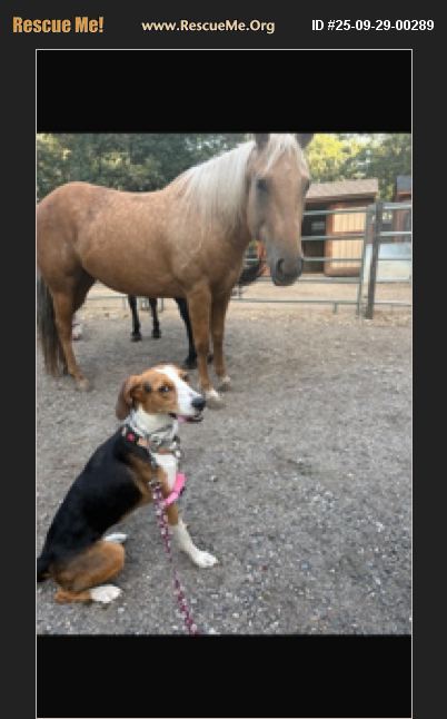 Cookie is an adorable and super sweet Foxhound and Harrier Terrier mix who will make a wonderful member of your family! She's 1-2 years old and has the sweetest disposition. She's fully grown at 45 pounds. She's great with other dogs and loves everyone she meets and greets them calmly and gives lots of cuddles. As you'll see in her photos, she also loves hanging out with horses on the farm that is close to her Foster home. She's just wants to give and receive love so we're looking for a wonderful adopter for her. She has lots of fun energy & is very smart and as you can see in her photos, she has beautiful a beautiful tri-color coat. And, just look at her happy smile! She's living with a great Foster family on Long Island so reach out to Long Road Home Rescue ([email protected] or call 516-459-3509) to find out more info and make plans to visit her today!