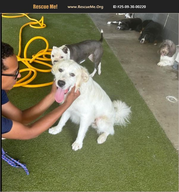 Very sweet, friendly, and energetic Great Pyrenees mix. Found as stray in 2/2025. He was malnourished and much of the fur on his posterior back and hind legs was gone (due to skin allergy with secondary Staph skin infection) when found. With TLC and meds he is now happy and healthy. He weighs about 60 lbs, so he is on the small side for a GP. Very smart, vaxxed, neutered, chipped, and crate trained! He would be a good companion for a young or middle aged adult or couple or family with older children/teenagers who can give him the exercise and attention he needs. Fun and goofy boy, but too energetic and large for smaller/younger children. He can be protective/possessive of his food/treats (possibly from his street days). He can be destructive/chewy and digs, which he will likely outgrow when he matures from puppyhood into adulthood.