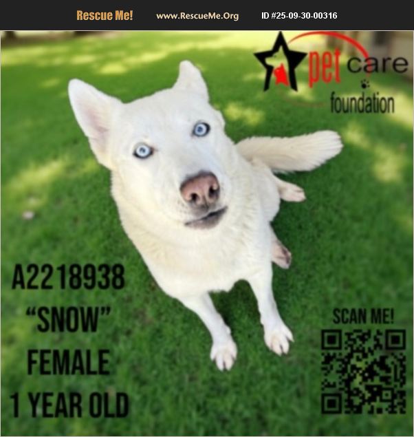 SNOW, A2218938: this gorgeous girl with those beautiful blue eyes has been put on the urgent list. She is on borrowed time before going onto the euthanasia list. Please be her hero. SPAYED FEMALE, WHITE HUSKY. Shelter: SOUTH L.A. Age: 1 YR, Weight: 49 LBS This animal has been at the shelter since 09/02/2025.