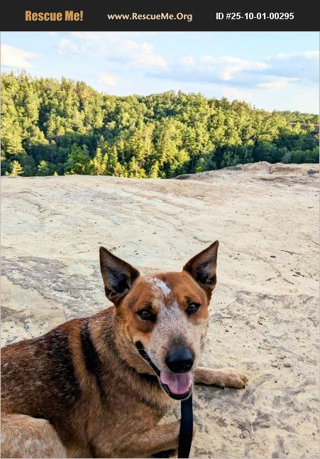Huckleberry was born in our Dayton, Ohio home on June 27, 2021 to our two heelers - a stub-tail red/blue red heeler mama (Annie 'Oakley') and a typical full-tail red/blue blue heeler (Daniel 'Boone'). Huck has grown up with us, and is a happy-go-lucky fella. He is accustomed to women. He lives at our house with my 5 kids - 4 of which are women, and I am also a woman. He can get used to men, of course, but ladies are his favorite. He is an EXCELLENT fetching dog -- he LOVES chasing a stick or ball or frisbee for hours and hours on-end. He likes to hike and has taken many trips to Natural Bridge, Kentucky. He is a typical red heeler with some anxiety and jumpiness, so the more physical activity, the better -- and that's how he loves life, anyway. He is so expressive and loves companionship. He is a hefty, taller dingo-boy. Very muscular, and just a prime example of a healthy guy. Very long full tail. In this past year, our older heeler (Huck's dad) Boone is a grouchy old man, and Huck does not like being around him in the slightest. We cannot rehome Boone due to his health issues. But Huck deserves to be in a home where he can relax and be happy. There is also concern for Boone, because of his aforementioned health issues and skirmishes with a much-healthier, bigger, healthier Huckleberry are becoming threatening to Boone's life. Huck has only ever been aggressive to Boone, and is totally fine around his mama Oakley and our male 5-year-old doodle. He has never shown an ounce of aggression toward any human inside or outside of our home. He has not been around cats. Right now, Huck stays separated from Boone by having full-range all day of our back yard. However, we live in Ohio, and the weather is about to change for the worst. We will have nowhere to place Huckleberry except outdoors or in a kennel. It is a pretty desperate situation, because I do NOT want to place him in a shelter, as the environment will send his anxiety into a very dangerous and unhealthy place. I prefer for Huck to go to a home with no other dogs and ONLY will go to someone with experience or extensive knowledge of Australian Cattle Dogs and their typical traits/issues. Huck is up to date on vaccines, including rabies. He is neutered. Please email me or message me with any questions relating to Huck. If I do not answer a call, I will likely be at work. Please feel free to leave a message.