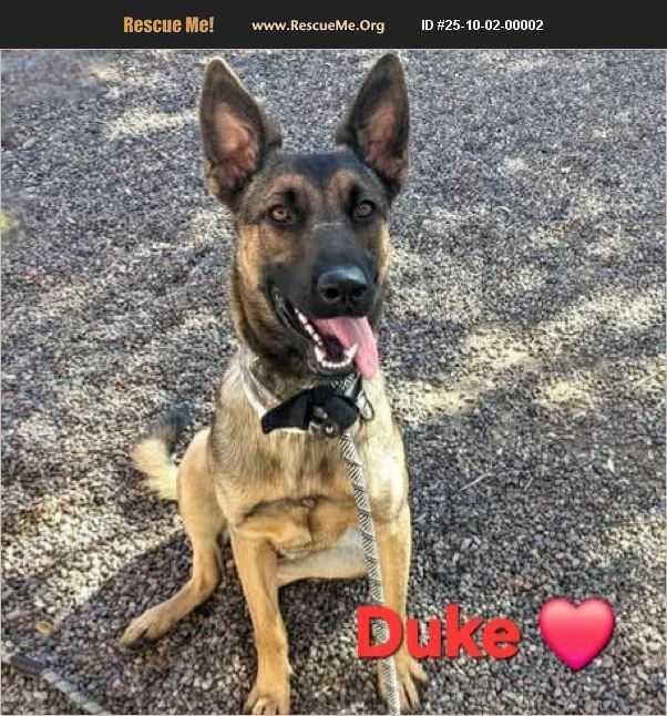 Please help me live! Mcacc Shelter has given me a deadline due to kennel stress. I have done nothing wrong so I hope you come and meet me before my deadline! LOCATED: 2500 S 27th Ave Phoenix Az Fill out: https://www.thedogsavers.org/apply-to-adopt/ Call: 480-331-4188 DUKE #A5150751 1yr old, 68lb Neutered-Male, Brown/Black Belgian Malinois. Found as a stray. * Wiggly, happy, loves people * Lots of puppy and Malinois energy * Loves to explore, do zoomies, and takes treats nicely * Playful, loves squeaky toys, enjoys all the sounds of people and toys- aware of things going on around him * Super friendly, social, loving pup * Smart boy- comes, sit, wants to learn more, runs on treadmill * Considered dog friendly w/proper slow introductions * Stressed in kennel- only gets out every 5 days but otherwise still happy
