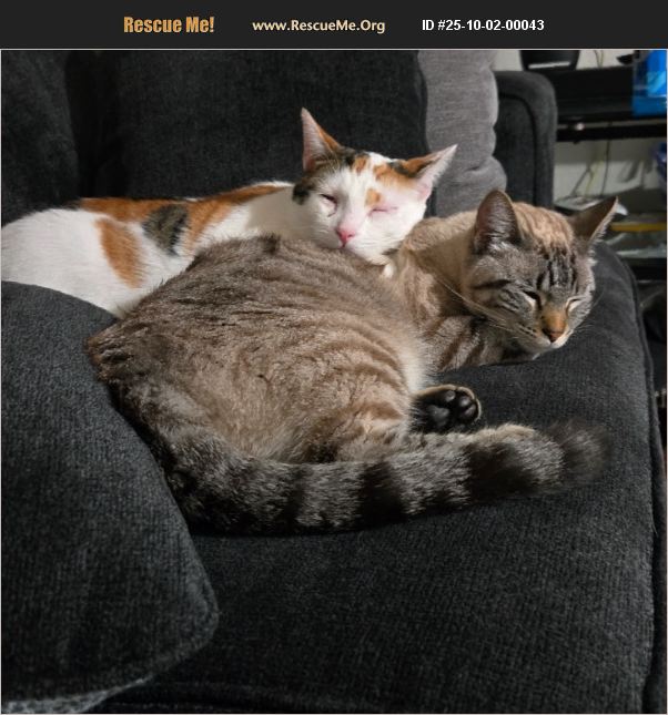 I have two cats Pixie (white) and Bella (Gray) that I need to rehome due to unforseen circumstances. It breaks my heart to have to rehome them. Pixie is very loving but doesn't like to be picked up on the other hand Bella loves to play and is very loving and likes to cuddle at night. I love both of my cats and hope to find them a loving home. They are both spayed and have their shots.