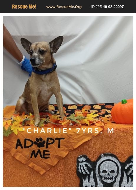 My name is Charlie and I'm a pint sized older gentleman that still thinks I'm a randy teenager. I was a surrender. If you're into miniature macho men, I'm probably your guy. I love affection and long walks on the beach. Want a date? Call the shelter at 7404410207. Looking forward to meeting you!