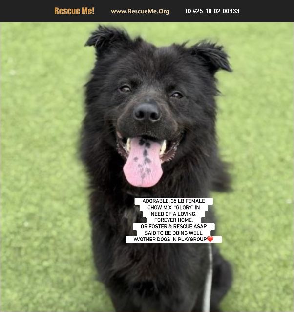 Courtesy Posting: CAMARILLO, CA (S CAL)- ID #A871642 - Ventura County Animal Services, Camarillo Location - ADORABLE, 35 LB FEMALE CHOW MIX 'GLORY' IN NEED OF A LOVING, FOREVER HOME, OR FOSTER AND RESCUE ASAP - SAID TO BE DOING WELL W/OTHER DOGS IN PLAYGROUP Please help us find a loving, forever home for this pretty little girl the shelter fondly named 'Glory' after she was brought to the Ventura County shelter as an abandoned stray. Estimated to be a 5 years young chow mix, the shelter told us, 'She is not currently housed with any other dogs, but has come into playgroup and done really well with other dogs-playful.' They also provided us with a link to one of her videos showing how much fun she is: https://www.facebook.com/reel/1036473205223987 There is a second video now posted on the shelter's listing link showing her also interacting with other dogs and having more fun: https://animalservices.venturacounty.gov/viewan-2/?ida=A871642 Glory is already spayed, vaccinated and microchipped and ready to go home. If you are interested to adopt, please contact the shelter directly by calling (805) 388-4341 and ask about Glory by ID. For further information about the adoption online process, you can go to: https://animalservices.venturacounty.gov/adoptionprocess/. Her listing link is: https://24Petconnect.com/DetailsMain/VNTR/A871642 If you may be interested in fostering or helping, please contact [email protected] or Southern California Chow Chow Rescue Network who can try to pair fosters with a rescue group. We will also post updates and additional pictures or video on facebook at: https://m.facebook.com/story.php?story_fbid=10167841729763125&id=783968124&mibextid=wwXIfr Note: to view contents of links you will need to copy and paste each one separately into your browser.