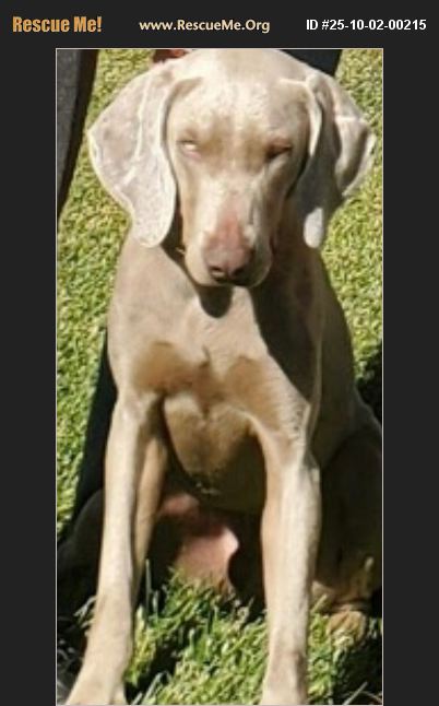 www.socalweimrescue.org/pages/adopt Dallas is only a year old and was found running the streets with his 6 month old brother Declan and littermate Dylan (we assume). They survived being on the streets together for 10 days that we are aware of. When finally contained they were turned over to us because finders wanted to have a good adopter help them. That would be YOU! Can you help him? Dallas is neutered and now a good healthy weight. He will need a lot of love, patience and training to get him used to your routine. Crate training is a life saver and will make house training a breeze. We won't lie, he will require a bit of work. Every Weim that is saved from horrible conditions ends up being the very best faithful companion. Won't you dig deep inside your heart and help one of the hopeless? We will update as we work with him and as he gains a little more trust. We'd love to have you meet him so we can know he will have a home to go to. He deserves so much! Currently he is fostered in Lake Forrest. He was adopted with his brother Dylan but they're having a little littermate sydrome and would do better apart.