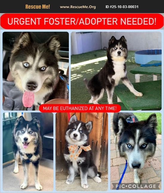 PLEASE HELP SAVE THOR! Thor's story is absolutely heartbreaking. Thor was one of Skye's surprise litter. Skye had been adopted from the Riverside Shelter, and just days later, she gave birth to four beautiful puppies. Skye was so thin at the time that the shelter had no idea she was pregnant. Skye's owner reached out to Jennifer with Pumpkin Pawz Rescue to help find good homes for the puppies. Three of the pups found wonderful, loving homes. I even fostered one myself, little Sylvie- she was full of life, easy to train, and an absolute joy, just like all of her siblings. But Thor's story didn't go the same way. He was given to a 'friend' who promised to give him a great life. Sadly, that promise was broken. Fast forward almost 3 years later- Thor has been found abandoned and neglected, thin and matted, and brought to the Pasadena Humane Society by a Good Samaritan. He deserved so much better. Thor is a 3-year-old Siberian Husky/Malamute mix (born 9/1/22). He is sweet, gentle, and absolutely stunning with the most gorgeous crystal blue eyes. He is neutered and ready for a second chance. His siblings are thriving in their forever homes. Thor deserves the same love and security. Thankfully, the chip traced him back to his original family (the one who adopted his mom, Skye at the Riverside Shelter), who are now desperately trying to help him find a safe, loving home and has asked for Jennifer's help again. Thor needs the community's help. The so-called 'friend' who took him won't even answer the phone. This is Thor's plea for a real forever family. He didn't ask for this, and his life is on the line at the shelter. Please don't let him be another sad statistic. If you can help save Thor, please contact Jennifer with Pumpkin Pawz Rescue at (714) 366-8170 (text is best). He needs a foster or adopter ASAP! Even if you can't adopt, please share this post everywhere. Sharing saves lives. Let's give Thor the happy ending he was robbed of. ID#A524686. Location: Pasadena Humane. Website: pasadenahumane.org. Phone Number: 626-792-7151 Address: 361 S. Raymond Ave. Pasadena, CA 91105