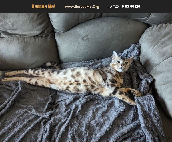Onyx is a handsome 5 year old pure bengal. He grew up with another bengal named Pearl. Their owner passed away but with our tiny apartment we couldn't properly care for them. Onyx is a big boy, it took a while to warm up but he is so sweet and funny.