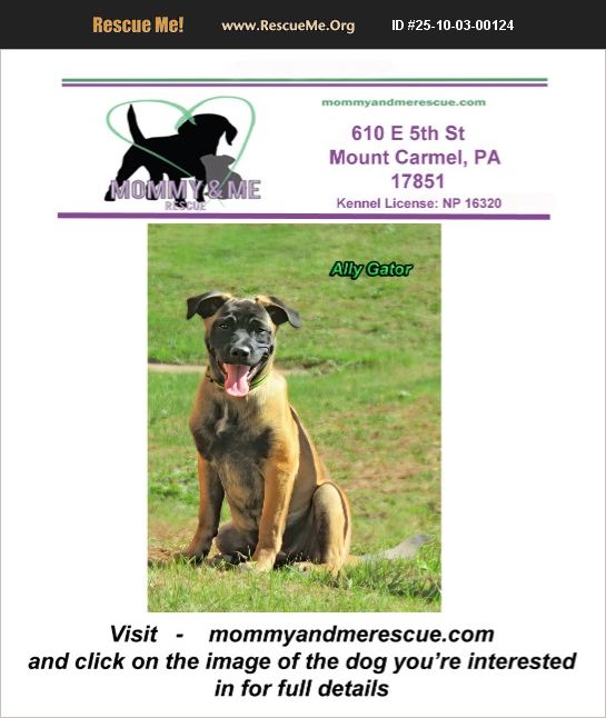Please fill out an application here ) https://mommyandmerescue.com/adoption-application/ and give your vet clinic permission to speak with us. Spayed/Neutered, UTD on vaccines, Chipped Adoption fee 400 You must submit the application and be approved prior to meeting one of our dogs. Please add our EMAIL to your contacts! [email protected] Kennel License: NP 16320 Ally Gator DOB: 6-6-25 Malinois / Pug / Jack Russell Estimated adult weight: 75 pounds Ally Gator is the result of an 'accidental' breeding. Being part Malinois and part Jack Russell makes her a very special dog. Ally needs someone who has Malinois experience as she presents more like a Malinois than pug/jack. She is high energy, extremely intelligent and needs an active lifestyle and/or a job to do. She will not be happy just being a couch potato. She has an active mind and will need challenges to keep her happy. We recommend continuing her training and will NOT adopt to anyone who isn't committed to that or doesn't have Malinois experience. She is fully house-trained and crate-trained. She loves people and other dogs. We believe she will be ok with older kids (13 and up). Ally was trained at FIDOS SCI Coal Township and knows the following: Heel Stay Other Side Leave it Sit Wait/Free Get it Down Come Off Up Front Under Touch Spin High Five Weaving between your legs Find (food/treats hidden)