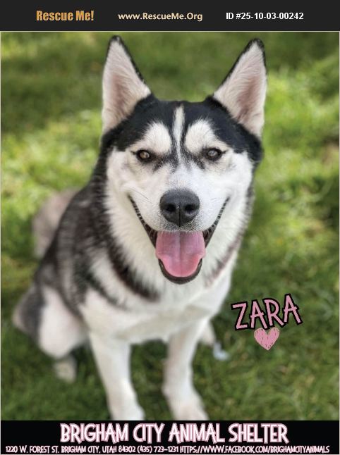 Meet Zara! Zara is a stunning 1-year-old female Husky with all the energy and personality you'd expect from her breed. Her adoption fee is $190, which includes a spay voucher. Zara has been a primarily indoor dog and is somewhat house-trained. She isn't a huge fan of being crated, but she's smart and already knows some basic commands. With her high energy level, she'll do best in an active home that can keep her busy both mentally and physically. A secure yard is a must for this adventurous girl! She's good with cats and does well with kids, though older children are recommended since she may accidentally knock down little ones in her excitement. Zara should not go to a home with chickens. She may be okay with other dogs, given a proper introduction, and she'll be joining playgroups soon to learn more about her social skills. If you're looking for a fun, loyal, and energetic companion, Zara might be the perfect match for you! All adoptions are upon approval of the adoption application only Shelter Hours: Tues-Fri 12-6pm Brigham City Animal Shelter 1220 W Forest St, Brigham City, UT 84302 (435) 723-1231 https://www.facebook.com/brighamcityanimals