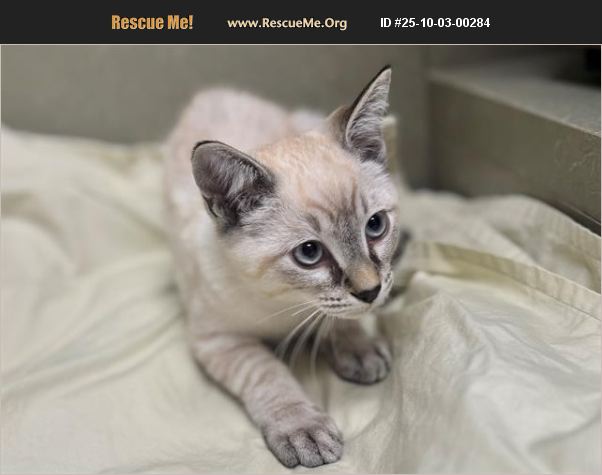 I am described as a male, silver lynx point Domestic Mediumhair mix. The shelter thinks I am about 12 weeks old. I weigh approximately 3.08 lbs. I have been at the shelter since Sep 30, 2025 and I may be available for adoption on Oct 07, 2025 at 11:09AM.