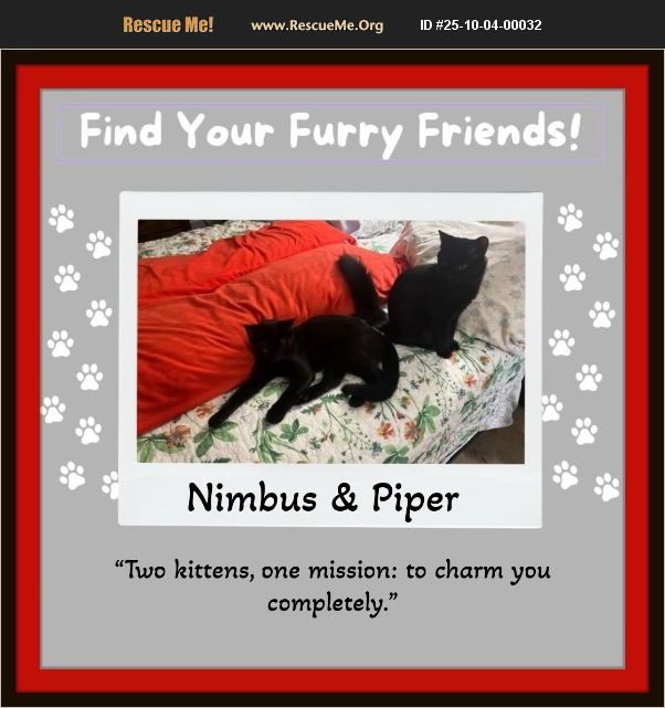 Meet Piper & Nimbus - Two silky sisters, one unstoppable bond-adopt your cuddle-powered dream team! Zoomies, sink naps, and sweet coos-Nimbus and Piper bring magic to every moment. At just 6 months old, Nimbus and Piper are a bonded pair of silky-soft black sisters who bring joy in stereo. Spayed, micro-chipped, and bursting with personality, these extroverted cuddle-bugs are ready to zoom straight into your heart. Whether they're streaking through the house like twin bolts of black lightning or curling up in bed for a cozy nap, these girls know how to balance play with affection. They're feather-on-a-pole fanatics, spring chasers, and catnip connoisseurs-with a special fondness for rubies (the toy kind, of course). Piper, the sink-sitting queen, has a flair for the quirky. She'll perch in porcelain like royalty, blinking and cooing in response to your voice. Piper is soft as silk, luxurious fur to pet. She enjoys brushing, too. Nimbus is her equally charming counterpart, always nearby for a snuggle or a sprint. Both girls adore people time, and they'll reward your attention with the softest purrs and the sweetest eye kisses. She is like a Turkish Angora, slightly longer hair on her body and a poofy tail that is like a feather duster. If you're looking for a duo that will fill your home with laughter, love, and the occasional bathroom surprise-Nimbus and Piper are your perfect match. Nimbus & Piper Perks -Spayed, fully vetted, and healthy -Micro-chipped with lifetime registration ($199 value!) included, an added perk of adopting from Rusty's Tales Rescue!! - Free microchip transfer from us to you, no hassle for you -15% off everything at Pet Supplies Plus - Hanes Mall, Winston-Salem, adoption gift. Risk-Free Two-Week Trial Adoption-no pressure, no guilt. We will take these lovely girls back if they are not a good fit. Available through Rusty's Tales Rescue, a compassionate spin-off of Snow Camp Sanctuary focused on adoptable strays and shelter kitties. Adoption fee is $150 each, adopt these cuties by 10/31/25, and we will take $25 off the total adoption fee. (Breakdown of costs if you vetted these kitties at a full service vet: Spay cost $175 each, vaccines $60 each, chips $45 each, and chip registration - $199 each - Total cost = $968) Adopting these cuties from Rusty's Tales saves you $683!! We take care of the details so you don't have to-just bring the love. Two silky sisters, with huge golden eyes, one unstoppable bond-adopt your cuddle-powered dream team! Apply today: rustystalesrescue.com/adoption-application