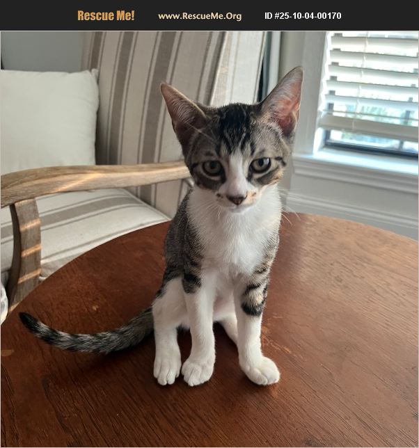 This is one of my rescue kitties. He is about 13 weeks old and is striped with white chest and feet.