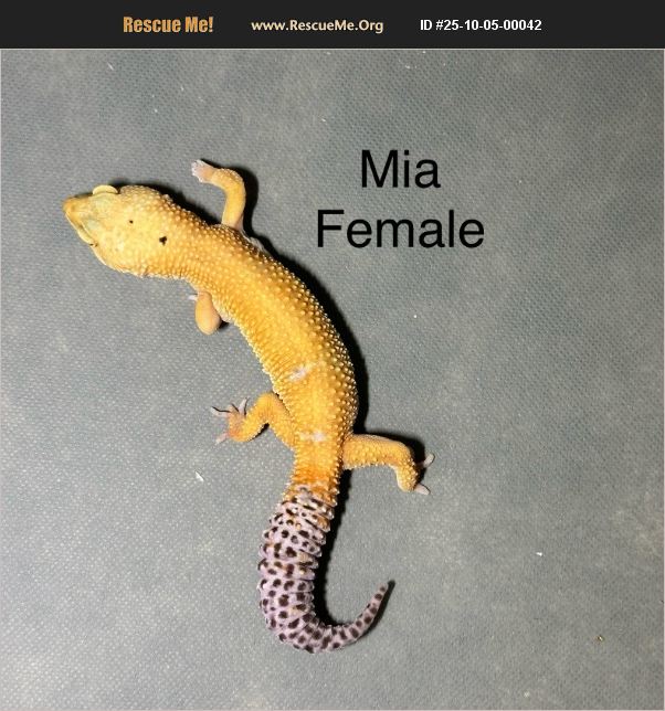 Hi my name is Mia! I am about 3 yrs old and enjoy being handled. I eat out of a bowl and tongs. I was surrendered due to my owner having a child and having no time to take care of me. Proof of proper enclosure and supplies required. We do not ship reptiles!