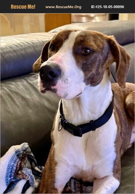 Brody is a sweetheart of a dog. Very friendly and happy. He loves to play with other dogs and run around outside, but inside, he is happy to be a couch potato. He sleeps well in a crate at night but I am sure he would be happy sleeping in bed with you.. He's a happy boy and very affectionate..He is not a barker. This handsome fella is currently in a foster home outside of Denver. Brody:. Neutered male. Up to date on vaccines. Microchipped. Breed - Pointer mix. Weight- 53.6 lbs.