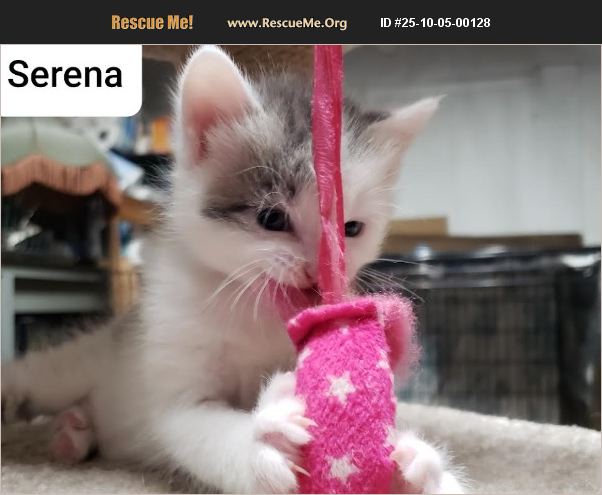 Serena is a little young to head to her forever home yet but we would be happy to accept applications and have her ready for you at the right time. Litter trained, current on vaccinations and will be spayed and microchipped when old enough. She okay with other cats but untested with dogs and young children. Very entertaining as kitten antics abound as she plays with her siblings. More on her personality can be found out by talking to the foster as she is still learning about her.