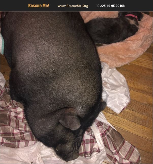 Pig. Has lived indoors and outside. Owner moved. Couple caring for himhad moved to apartment.